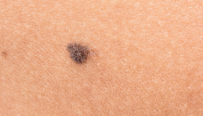O melanoma é tipo menos frequente, mas com maior gravidade e alta mortalidade. O melanoma tem a  aparência de uma pinta ou sinal em tons acastanhados/ enegrecidos, que pode mudar de cor, formato ou tamanho.